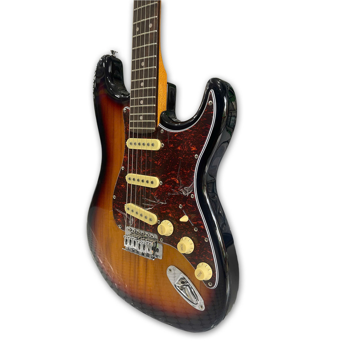Màu sắc: Sunburst (vàng đen truyền thống) kết hợp với tấm chắn (pickguard) màu đồi mồi (tortoise).