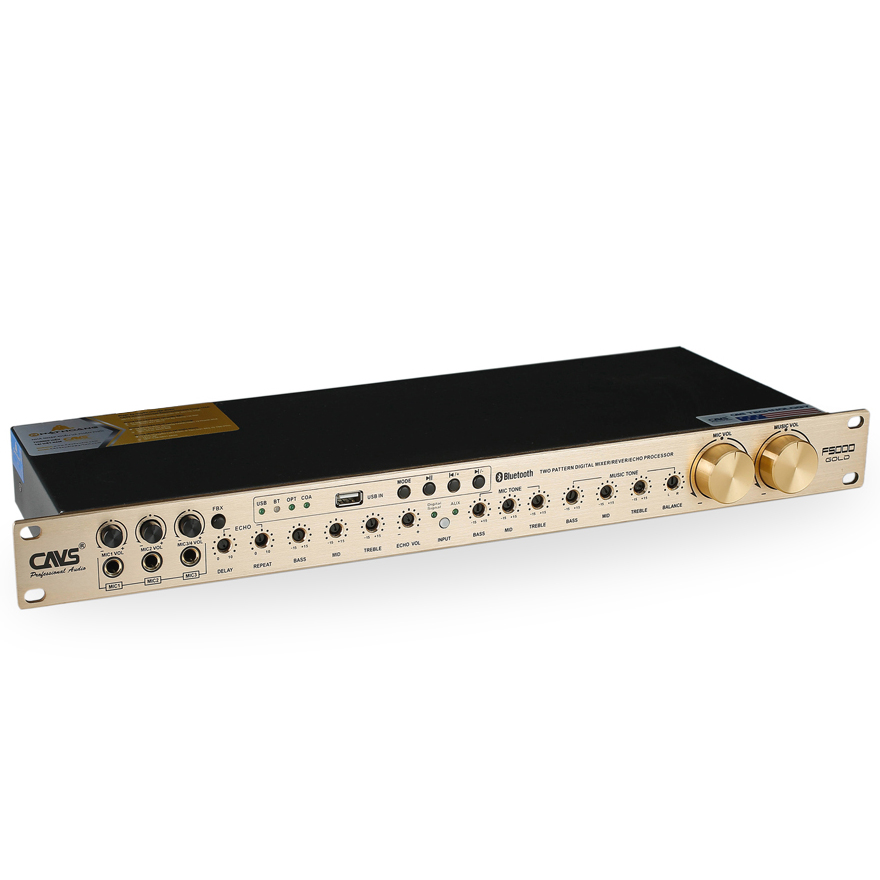 Tiếp nối sự thành công và sự phát triển của thương hiệu CAVS, Chúng tôi đã nghiên cứu và cho ra những sản phẩm Vang cơ để tiện lợi hơn cho người yêu âm nhạc, với sự thành công của Model Vang Cơ CAVS 102E, thì CAVS cho ra mắt sản phẩm Model vang cơ CAVS F-5000 Gold hỗ trợ trộn âm thanh, xử lý tín hiệu âm thanh cho chất lượng tốt nhất. Sản phẩm ứng dụng công nghệ tiên tiến mới nhất hiện nay với mạch chống hú Anti-Feedback chống ríu rít cực kỳ hiệu quả. Vang cơ CAVS F-5000 Gold đang là lựa chọn tốt nhất cho mọi dàn âm thanh, là bản nâng cấp của dòng vang cơ CAVS