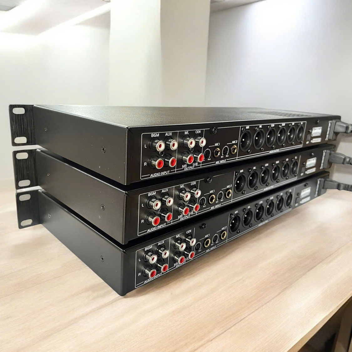 - Hiệu ứng, đầu ra kênh trung tâm, đầu ra loa siêu trầm đều có 3 đoạn PEQ.