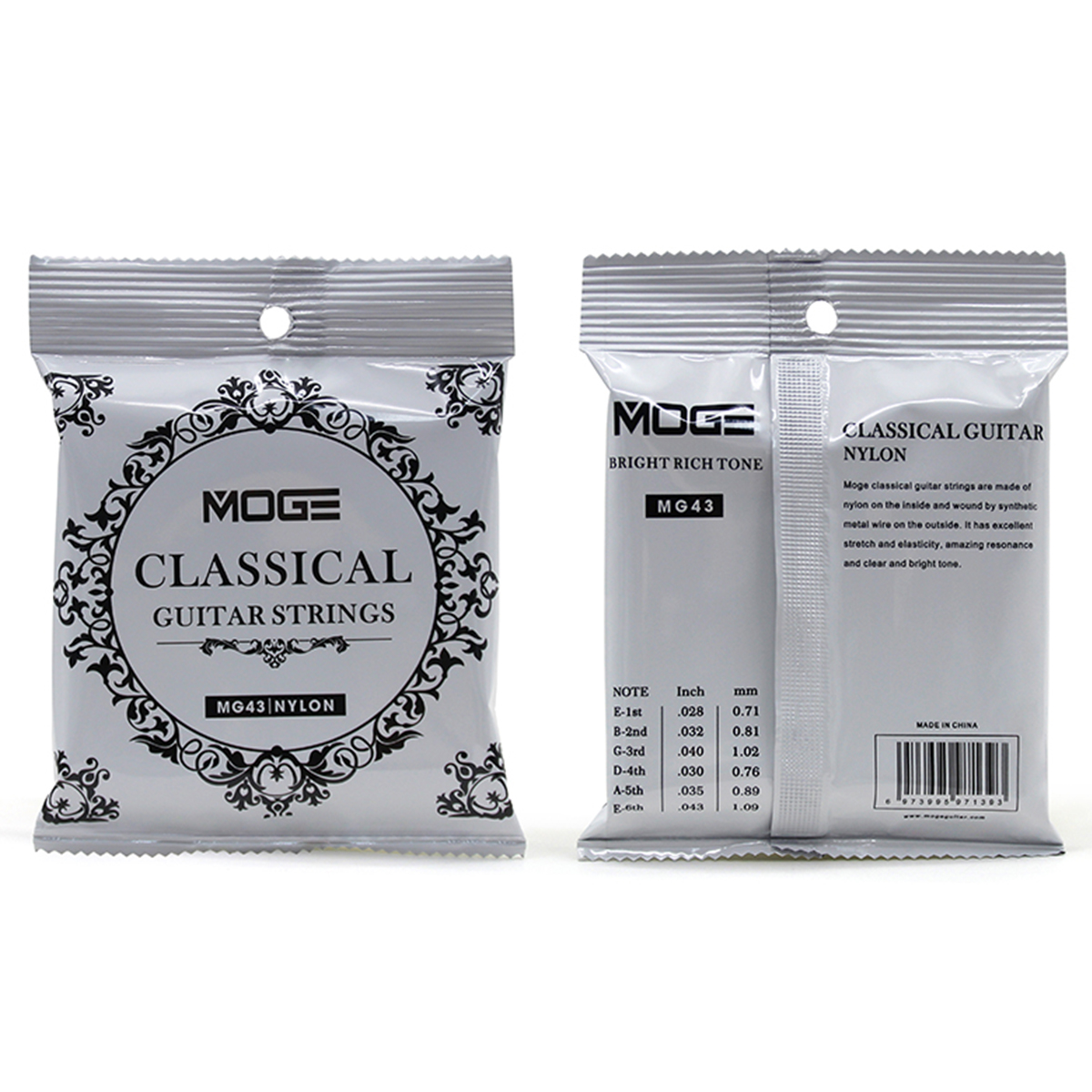 Dây Moge MG43 là bộ dây dành cho đàn guitar Classic (đàn cổ điển), không phải guitar điện như nhầm lẫn thường gặp. Đây là dòng dây phân khúc bình dân, rất phổ biến cho người mới tập nhờ cảm giác bấm êm tay và mức giá dễ tiếp cận.